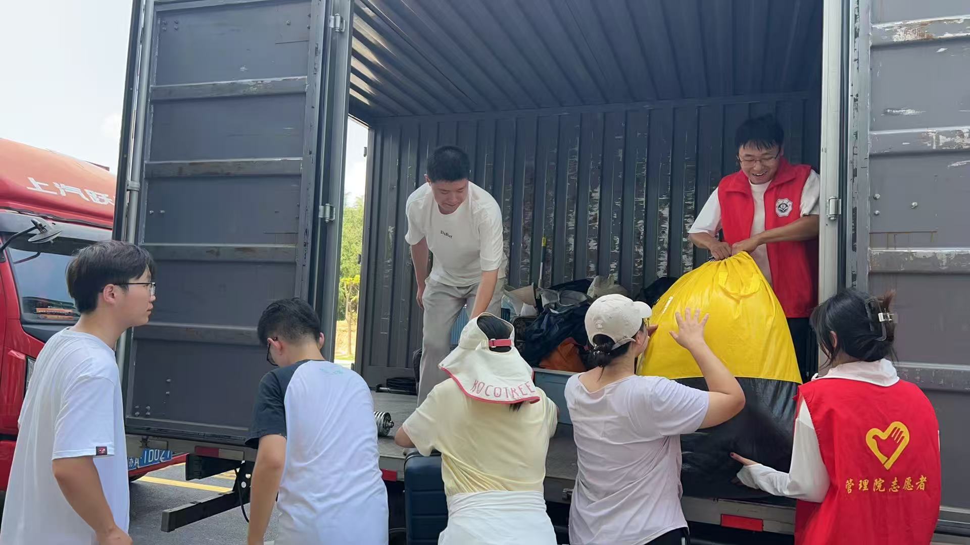 志愿服务,传递青春力量温情暖。本次搬迁中,霍里山及郑蒲港校区选派多名学生志愿者作为搬宿现场工作的骨干。他们身穿彩色马甲、脖子上挂着志愿工作证,穿梭在搬迁现场、食堂门口。志愿者们在多个岗位协同作战,在食堂门口发放解暑绿豆汤,在装车点严谨核对信息,在楼梯口耐心维护秩序、细心服务搬迁同学,用实际行动诠释着青春担当与无私奉献的志愿服务精神。