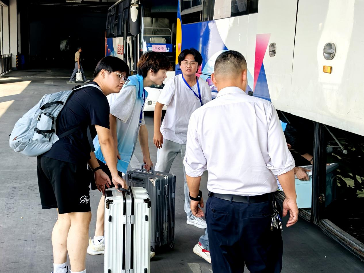 为让新生从踏入马鞍山的那一刻起就感受到“家的温度”,学校提前统筹各二级学院、相关部门教职工和迎新志愿者的力量,将细致服务贯穿迎新全程。在马鞍山东站、郑蒲港校区各报到接待点,教职工与迎新志愿者早早到位等候,专属迎新大巴循环往返,从清晨到深夜不间断提供免费接送服务,全力打通新生从车站到宿舍的“最后一公里”。