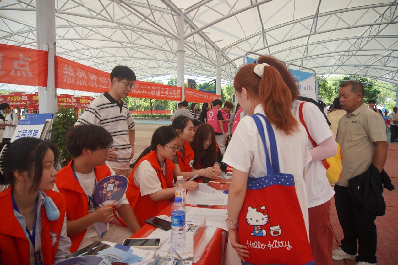 新生报到期间,学校及各二级学院领导多次前往迎新现场,深入各报到点、服务点及宿舍区,实地查看秩序与服务情况。在绿豆汤服务点,领导们特意询问饮品补给频率,叮嘱工作人员“天气炎热,及时补充,确保大家随时能喝到清凉解渴的绿豆汤”;与新生及家长交流时,他们耐心询问“来校路上顺利吗”“校园环境还习惯吗”,并及时协调解决报到过程中出现的行李存放困难、流程疑问等问题。