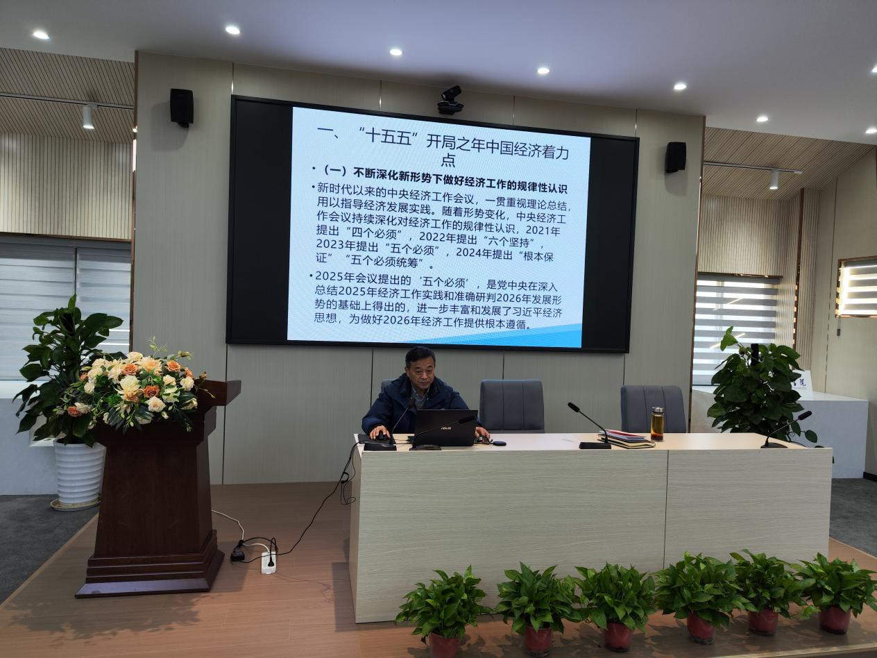 学习会上,党委副书记孙良作中央经济工作会议精神专题辅导。孙良围绕2026年经济工作着力点,深入解读了积极有为的宏观调控政策、建设强大的国内统一大市场、培育壮大新动能、深化改革激活力、重点领域防风险等重点内容。他阐释了对新形势下经济工作“五个必须”的新认识,以及对“十五五”开局之年经济工作“八个坚持”重点任务的理解。