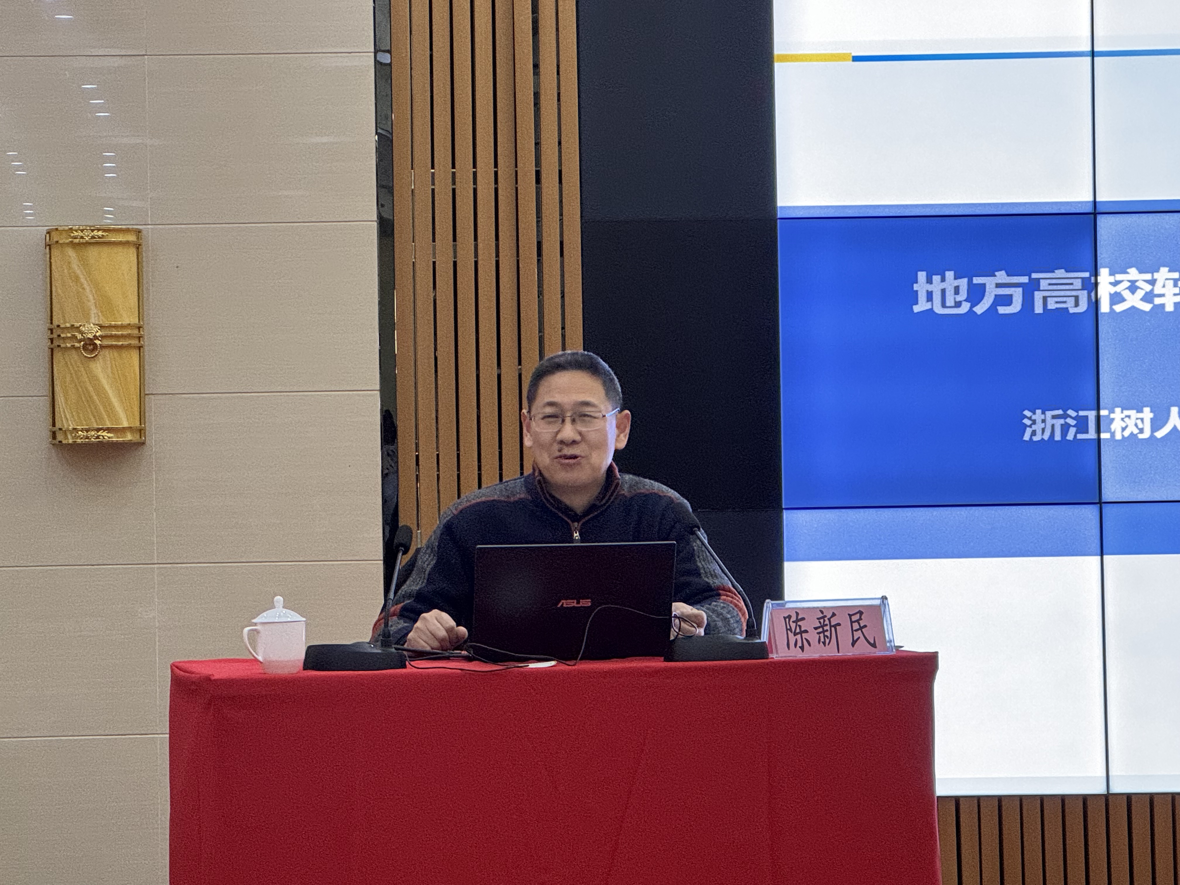 会议邀请浙江树人学院副校长陈新民莅临,作《地方高校转型发展与应用型人才培养》专题讲座。陈新民紧密结合当前高等教育发展新形势、新趋势,立足浙江树人学院实践探索经验,围绕地方高校转型发展路径、应用型人才培养核心要义等关键议题,深入剖析我校转设以来的建设成效与产教融合推进情况,结合多所民办院校办学定位案例分享经验,为我校进一步深化应用型人才培养、提升办学治校水平提供了宝贵借鉴与实践参考。