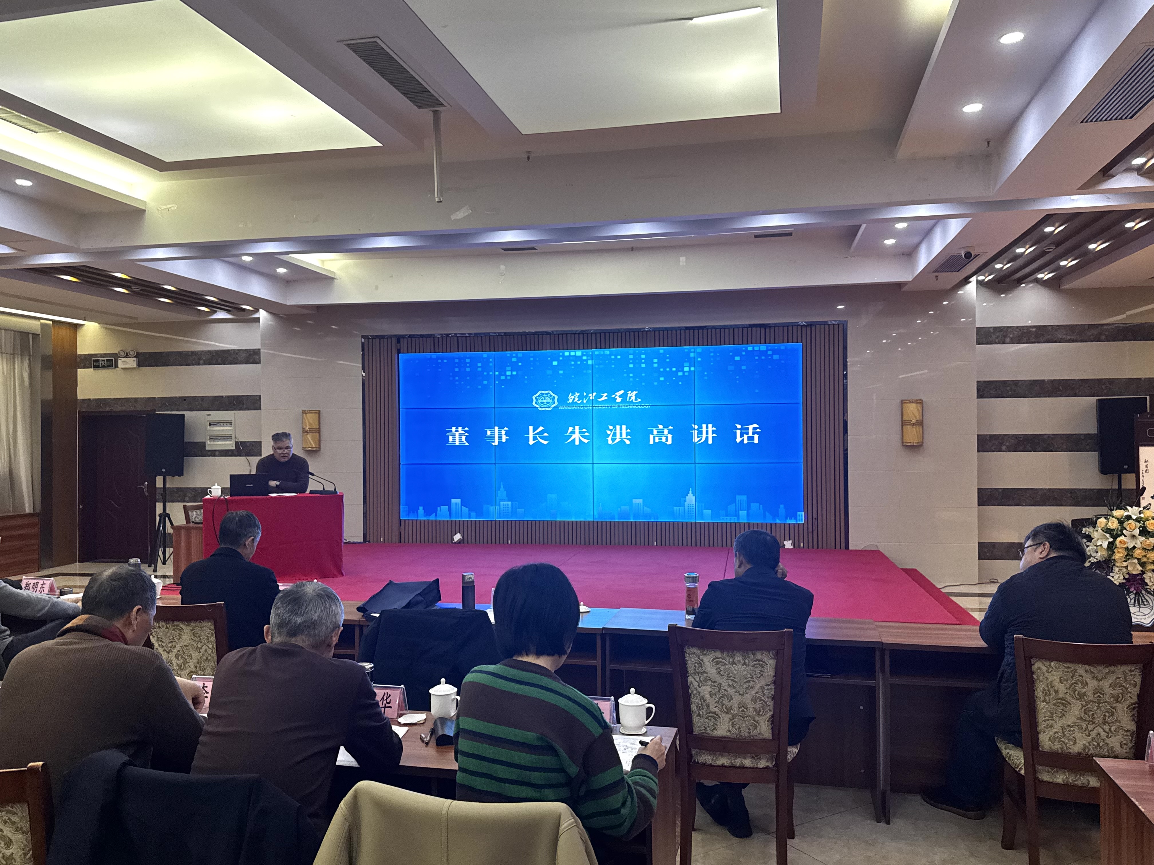 朱洪高在总结讲话中提出,2026年是“十五五”规划开局之年,也是任务更重、标准更高、要求更严的一年。中层干部作为学校发展的中坚力量,要敢于打破思维定式,大胆探索人才培养模式、专业建设、内部治理等方面的创新。他要求:一是锚定办学提升目标,全力高质量通过审核评估,细化硕士点建设指标并压实部门责任,持续提升核心竞争力;二是聚焦推进重点工作,深化产学研融合与校企合作,强化部门协同联动,构建闭环工作体系;三是抓实制度建设完善,完成职称制度修订,规范人才引进、财务采购、教学监控等工作流程;四是从严抓好纪律管理,要求严守纪律规矩、筑牢安全防线、强化理论学习,做好青年教师关爱和学生服务工作,加强跨部门协作,锻造高素质高效能工作团队,为新时代高等教育高质量发展贡献皖工智慧和皖工力量。