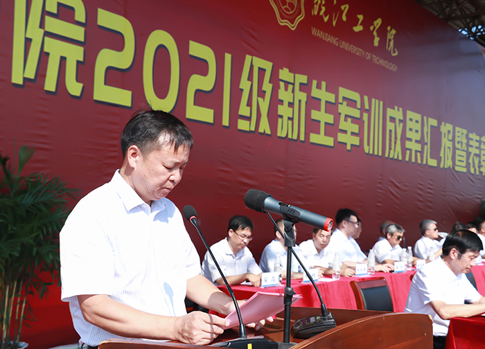 9月26日上午,皖江工学院2021级新生军训成果汇报暨表彰大会在郑蒲港校区举行。董事长朱洪高,省督导专员、党委书记刘志祥,校长吴继敏,党委副书记张勤,副校长汪光阳、张建民、阮怀宁、朱建芬、侯进元等校领导,各二级学院院长、总支书记,各职能部门负责人参会。大会由张建民主持。