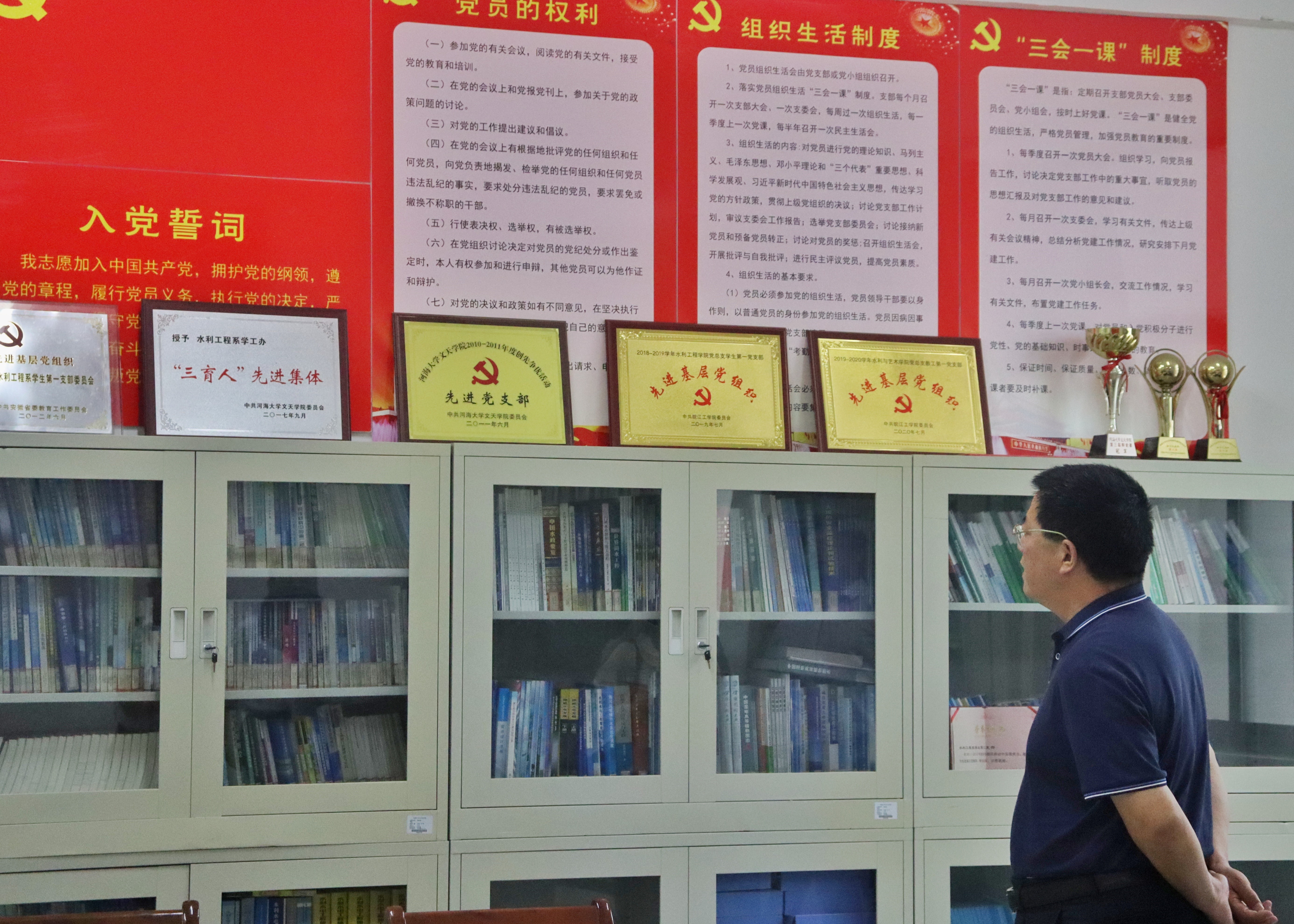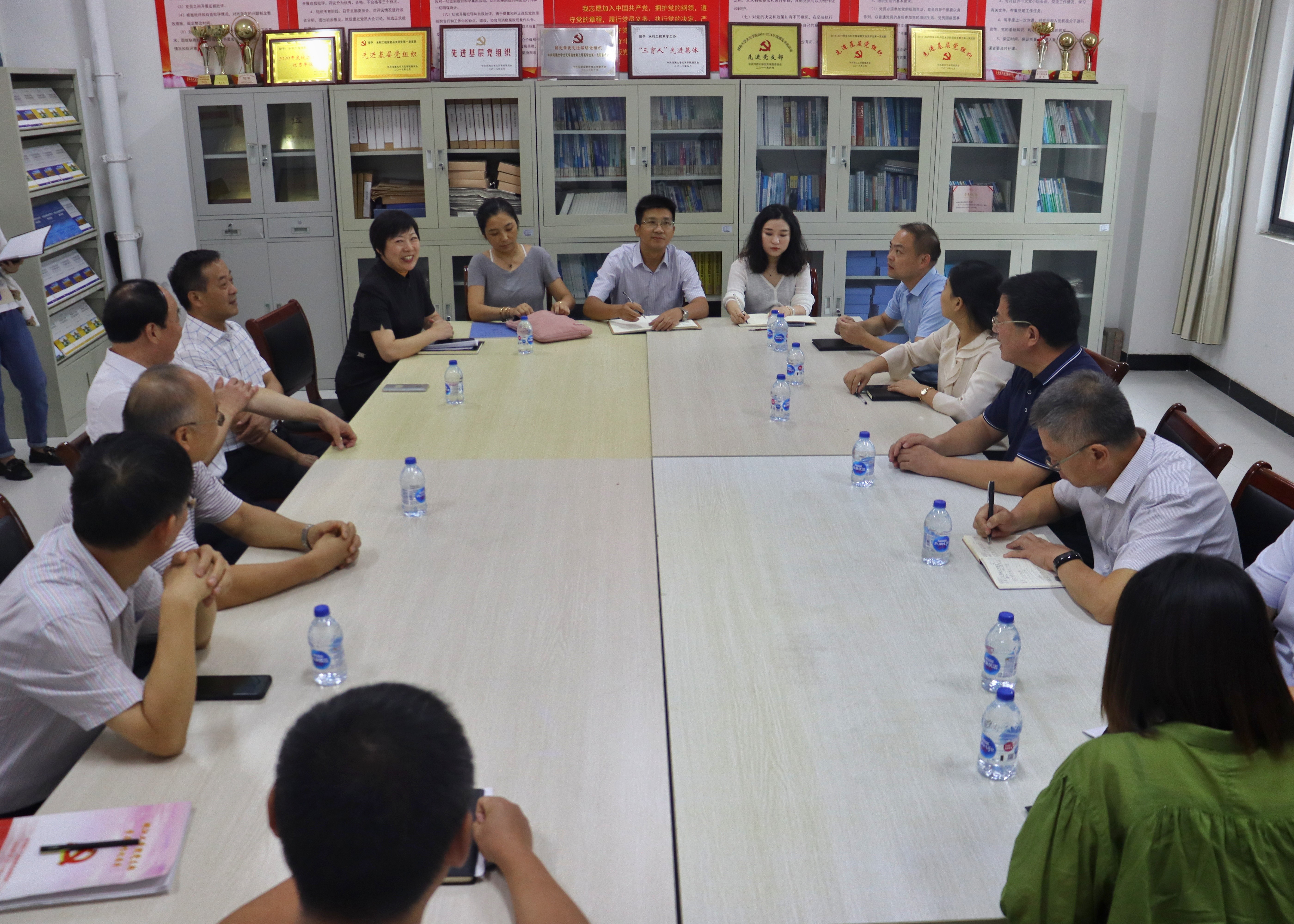 周正忍一行参观了我校大学生一站式服务中心和水利工程学院党员活动室,并与相关人员交流工作近况。随后,双方围绕民办高校贯彻落实党的教育方针和基层党组织作用发挥两方面的工作情况座谈交流。