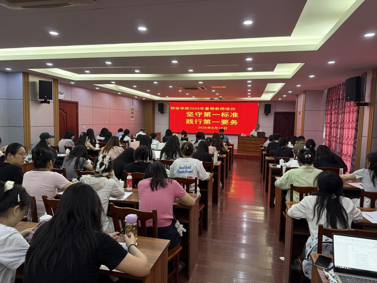 为进一步加强教师队伍建设,扎实推进本科教学工作合格评估准备工作,财经学院于8月18日组织开展师德师风建设与合格评估应知应会专题培训。杨安胜书记、程志鹏副书记分别就相关内容作专题讲解,全体教职工参加培训。