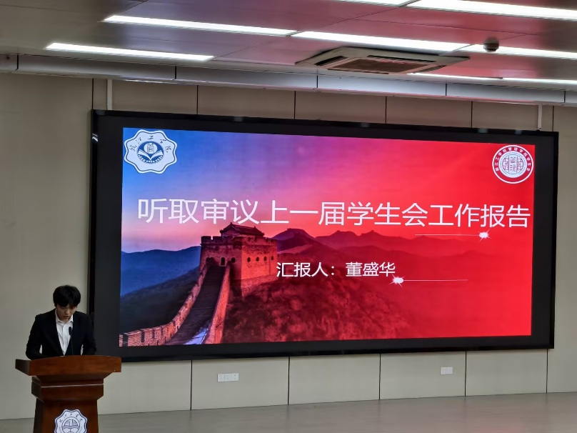 会上,学生会主席团执行主席董盛华作上一届学生会工作报告。报告全面回顾了过去一年学生会在组织协调工作,开展活动项目等方面的工作成果,客观分析了工作中存在的不足,并对下一届主席团提出殷切期许,希望新一届团队能够坚守服务初心,勇于担当作为,推动学院学生工作再上新台阶。