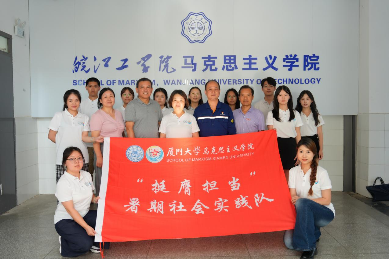 7月23日下午,厦门大学马克思主义学院石红梅书记带领的博士调研团队研学活动在我校马克思主义学院笃学楼党员活动室顺利开展。厦门大学马克思主义学院党委书记、教授、博士生导师石红梅,及其带领的3名博士生、4名硕士生、4名本科生就“教育、科技、人才”一体化建设项目对我校马院开展调研。马鞍山市劳模(工匠)精神研究传播中心专家代表,全国劳动模范、全国五一劳动奖章获得者沈飞,我校马克思主义学院党总支书记陈毓陵,常务副院长刘双,教学副院长胡耀东,教师代表常嵩参加会议。此次研学调研活动由座谈、调研提问,劳模代表讲座,现场实践教学展示三各板块组成。会议由陈毓陵主持。
