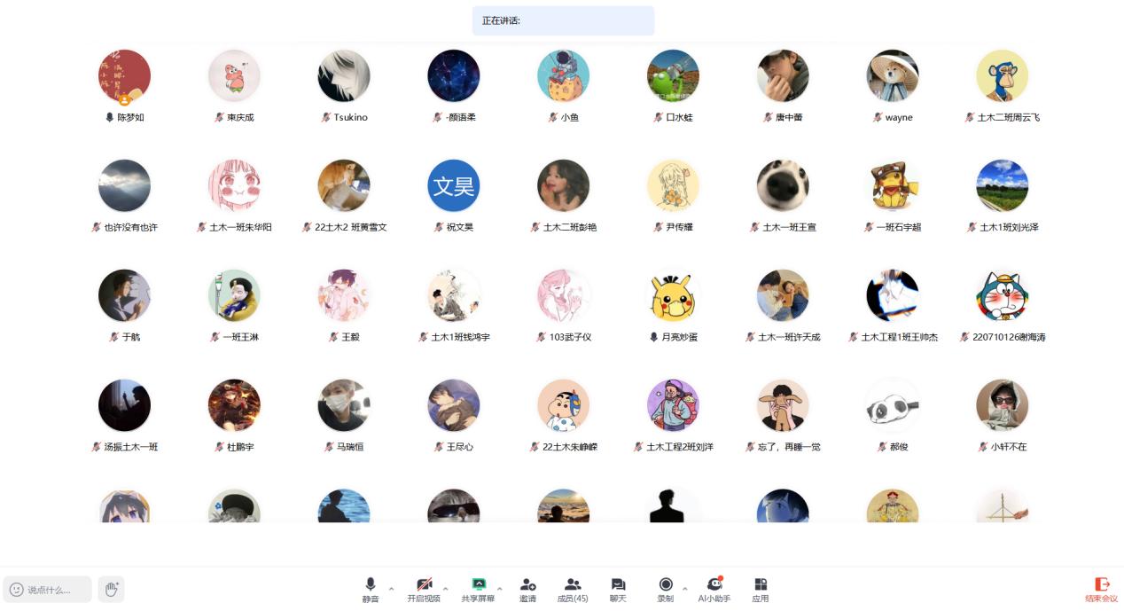 6月25日,土木工程学院2022级土木工程专业1班、2班召开“以评促教,携手同行”学生评教活动主题班会。本次班会在线上举行,旨在搭建师生沟通平台,通过学生评教促进教学改进,凝聚师生合力,共同提升教学质量。会议由班主任陈梦如主持,专业全体学生参加。