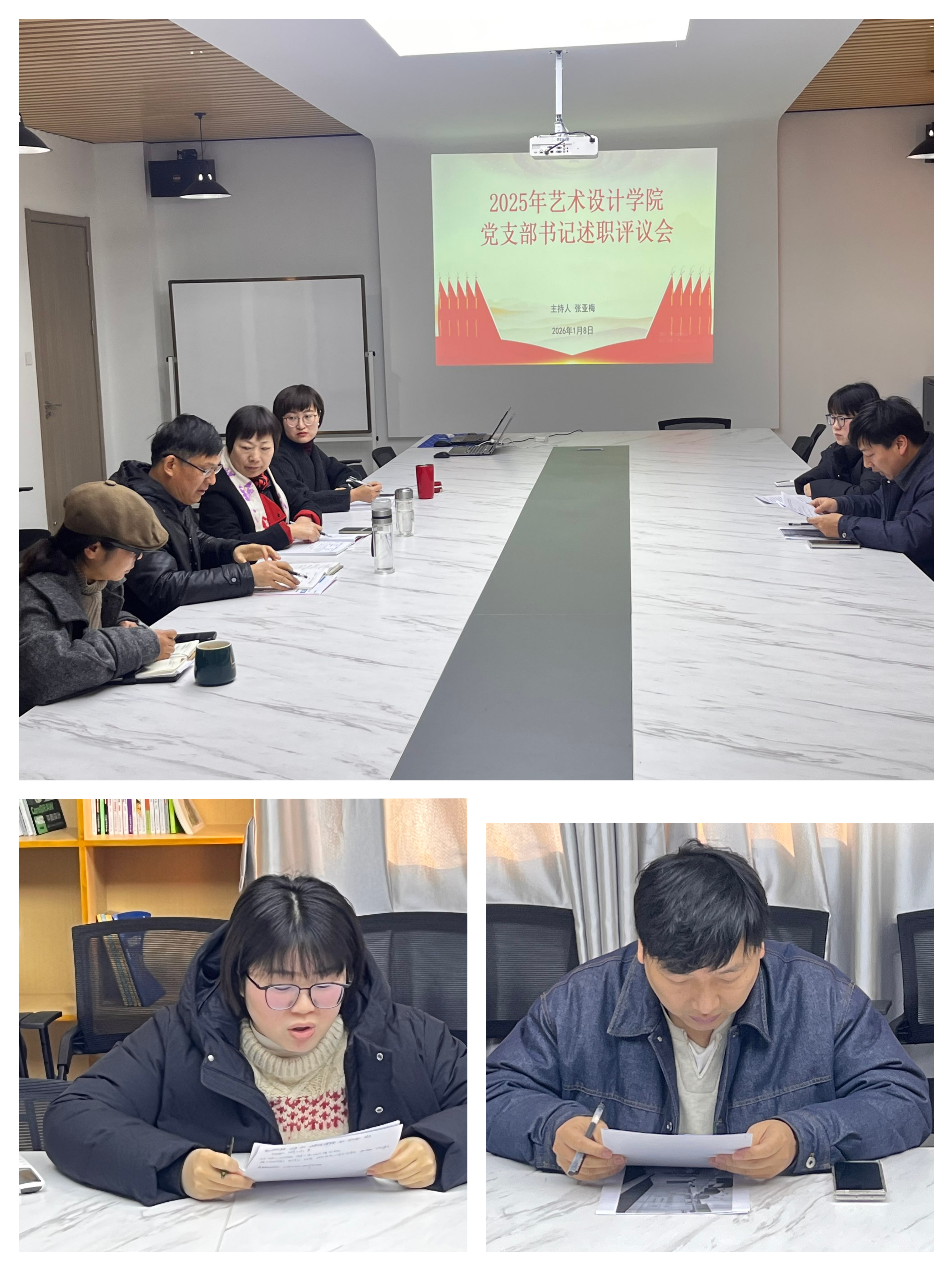 为深入学习贯彻习近平新时代中国特色社会主义思想,压紧压实基层党建工作责任,全面检验2025年度基层党建工作成效,2026年1月8日,艺术设计学院在203会议室召开了2025年度党支部书记述职评议会。全体党总支委员及党支部书记参加会议,会议由党总支书记张亚梅主持。